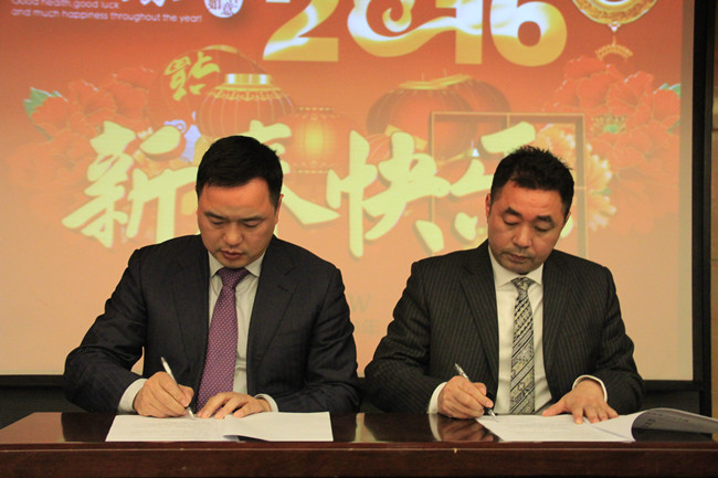 圖為劉金成董事長與李華平總裁簽訂2016年度目標(biāo)責(zé)任書