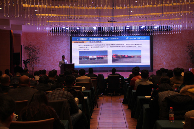 圖為李華平總裁作2014年度經(jīng)營管理工作報(bào)告