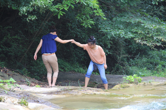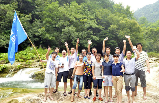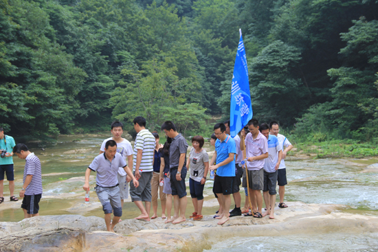 7月28日清早,本次經(jīng)營(yíng)拓展訓(xùn)練營(yíng)的最后一項(xiàng)主題活動(dòng)——虎嘯灘深度野外探險(xiǎn)啟程?;[灘自然風(fēng)景區(qū)位于鄂陜邊境,集山、水、洞、泉、瀑為一體,景區(qū)峰巒疊嶂、古木幽深、灘勢(shì)星羅棋布,以秀美的瀑布和奇險(xiǎn)的山巒著稱。訓(xùn)練營(yíng)成員在孫雄飛副總裁的組織帶領(lǐng)下,相互扶持穿越景區(qū),登山、涉險(xiǎn)灘,勝利抵達(dá)集結(jié)地點(diǎn),無(wú)一人落隊(duì),部分體力較好的隊(duì)員甚至深入到景區(qū)內(nèi)尚未開(kāi)發(fā)的區(qū)域探險(xiǎn),欣賞原汁原味的山區(qū)景致,實(shí)地體驗(yàn)了“人在峽中走,如在畫(huà)中游”的感受。