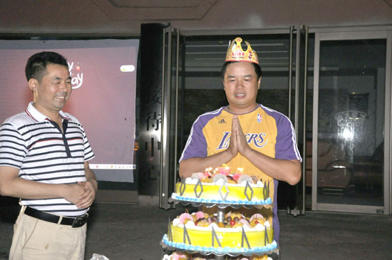 劉金成董事長(zhǎng)(右)接受生日祝福