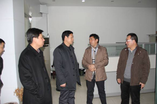 趙曉斌常務(wù)副縣長(左二)、副縣長朱波(左一)考察汽貿(mào)分公司現(xiàn)場