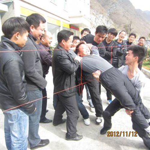 “生死電網(wǎng)”素質(zhì)拓展活動(dòng)現(xiàn)場(chǎng),大家鼎力協(xié)作