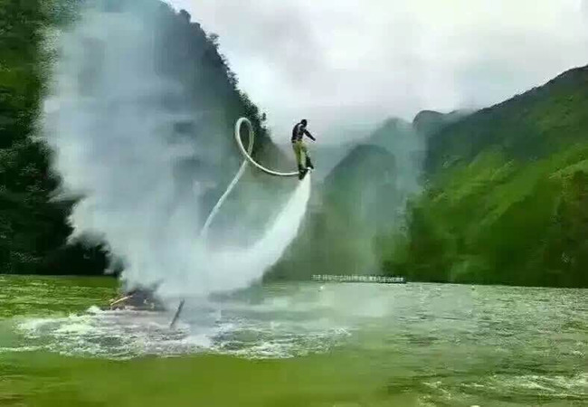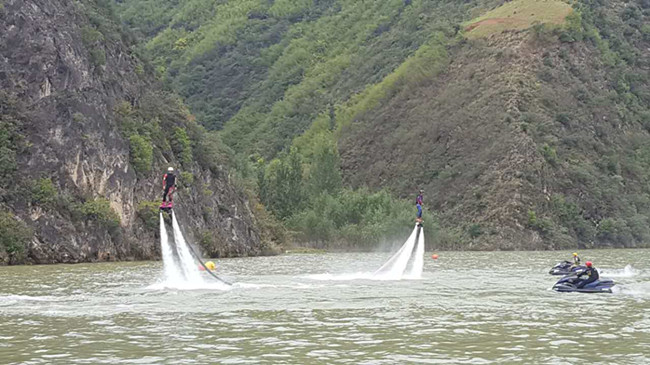 圖為水上飛人花樣表演