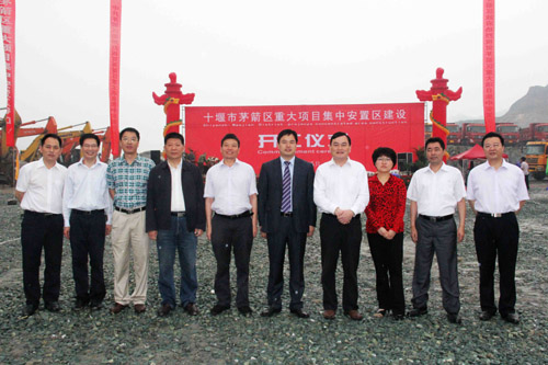 劉金成董事長(zhǎng)(右5)、李華平總裁(右2)與茅箭區(qū)區(qū)委書記趙哲(右4),茅箭區(qū)區(qū)委副書記、