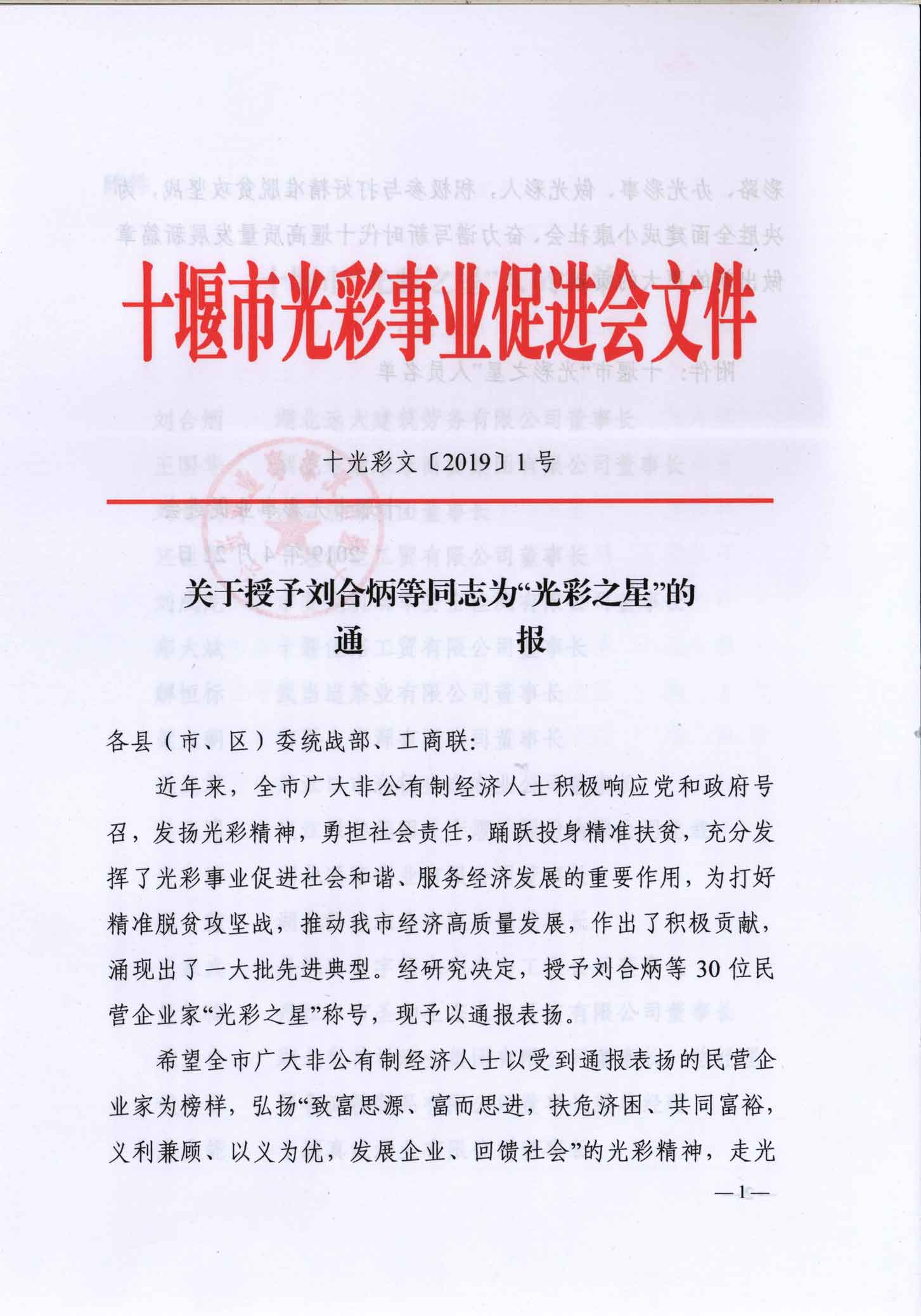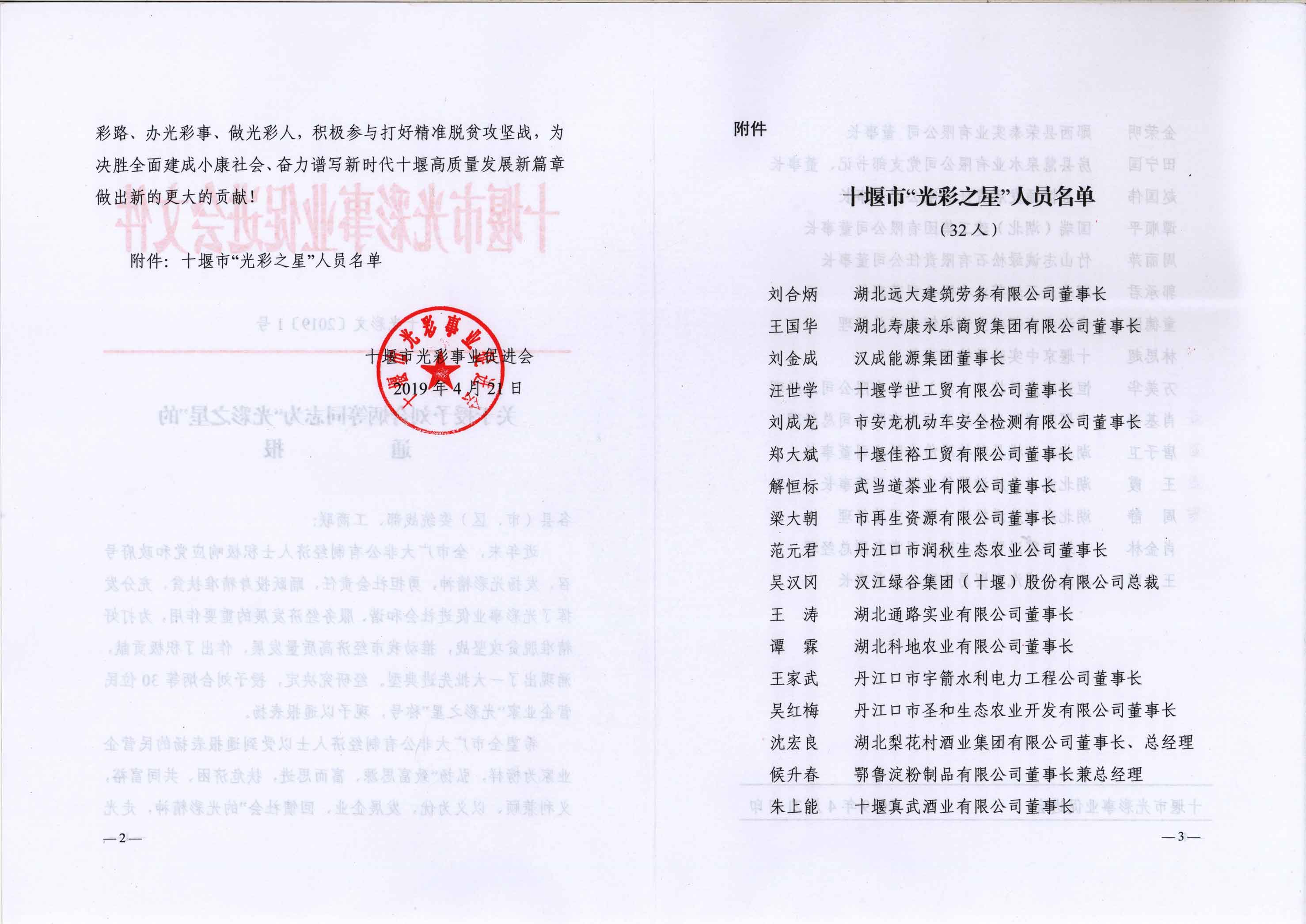 展,作出了積極貢獻。漢成能源集團董事長劉金成同志在光彩事業(yè)中貢獻突出榮獲“光彩之星”榮譽稱號。