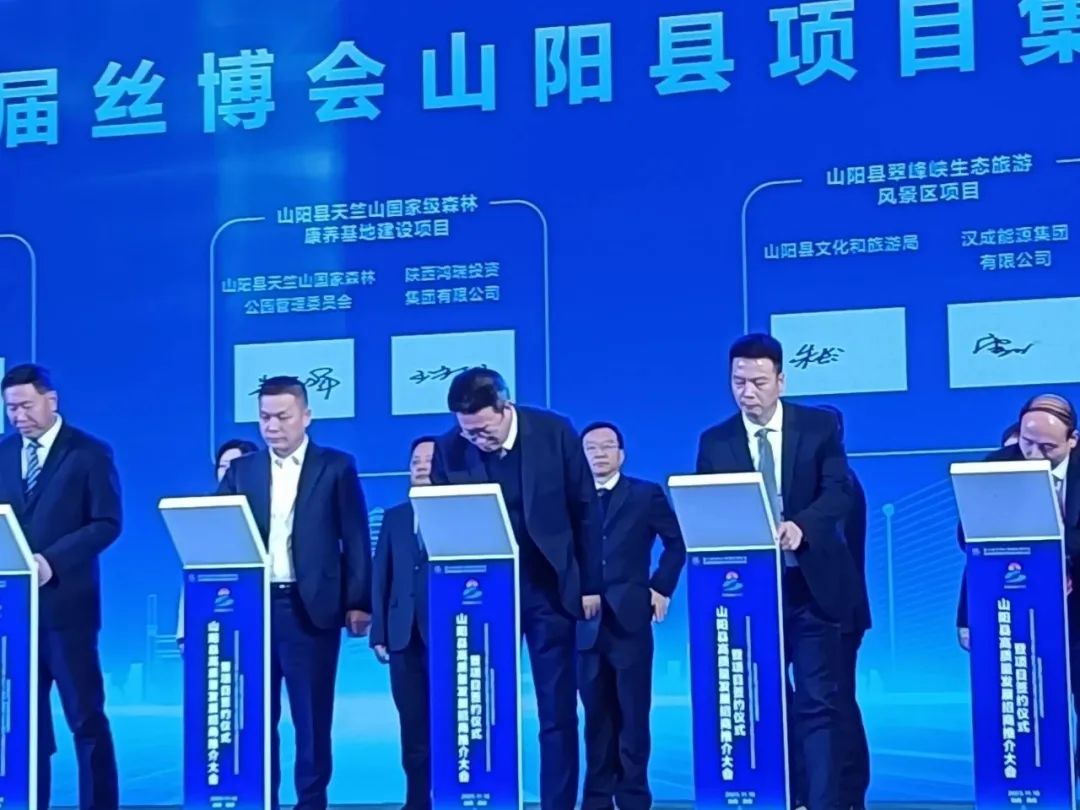據(jù)悉,本屆絲博會山陽縣共簽約43個項目,總投資208.37億元。其中,漢成能源集團與山陽縣人民政府成功簽約翠峰峽旅游風景區(qū)投資開發(fā)項目。